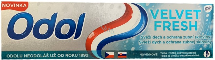 Odol Velvet Fresh pomaga przywracać naturalną biel zębów, remineralizuje, wzmacnia i pomaga chronić szkliwo zębów. Składniki wybielające czyszczą i usuwają przebarwienia. Jednocześnie są delikatne dla szkliwa zębów. Tworzą wokół zęba ochronną warstwę, która pomaga zapobiegać przebarwieniom.