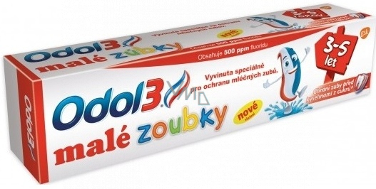 Zubní pasta Odol3 malé zoubky byla vyvinuta pro děti ve věku 3-5 let. Trojbarevná zubní pasta poskytuje trojnásobnou ochranu, citlivou péči a ochranu mléčných zubů před zubním kazem, neboť jen zdravý mléčný chrup je předpokladem zdravých stálých zubů. Díky fluoridu chrání zuby před kyselinami z cukrů, které způsobují zubní kaz, a pomáhá posilovat zubní sklovinu.