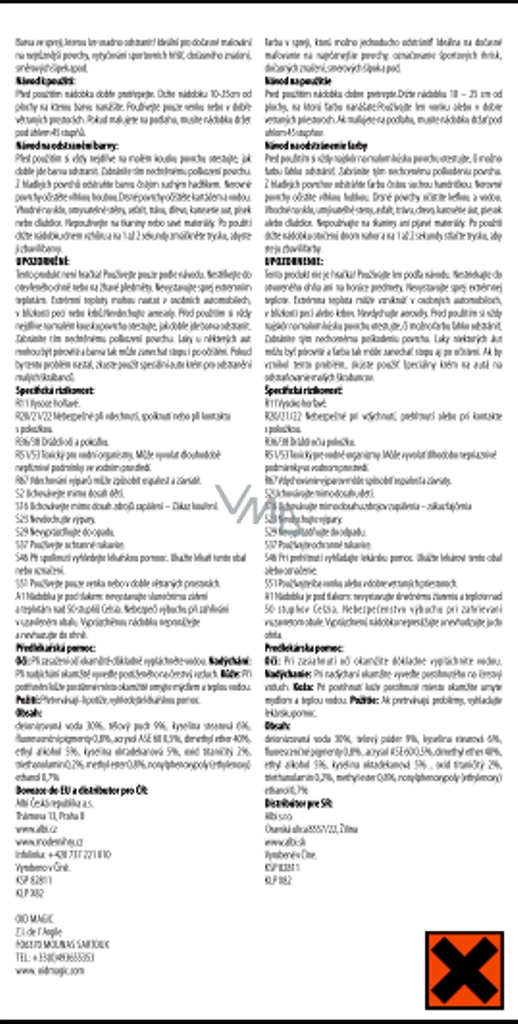 Tento produkt není hračka. Používejte pouze podle návodu. Nestříkejte do otevřeného ohně nebo na žhavé předměty. Nevystavujte sprej extrémním teplotám. Extrémní teploty mohou nastat v osobních automobilech, v blízkosti pecí nebo krbů. Nevdechujte aerosoly. Před použitím si vždy nejdříve na malém kousku povrchu otestujte, jak dobře jde barva odstranit. Laky u některých aut mohou být pórovité a barva tak může zanechat stopu i po očištění. Pokud by tento problém nastal, zkuste použít speciální auto krém pro odstranění malých škrábanců.