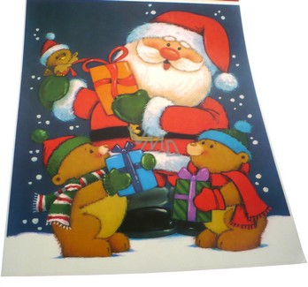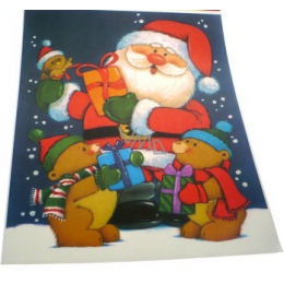 Vánoční okenní fólie barevná SANTA a MEDVĚDI 43 x 30 cm