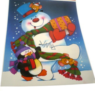Vánoční okenní fólie barevná SNĚHULÁK A TUČŇÁK 43 x 30 cm