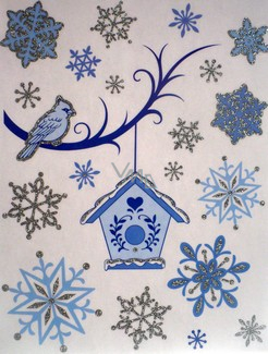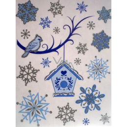 Opis Okenní fólie bez lepidla ledová se stříbrnými glitry budka 31 x 22 cm