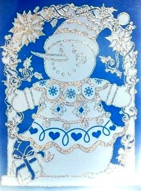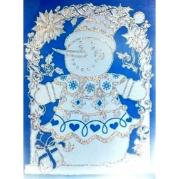 Vánoční okenní fólie zlaté glitry oblouk SNĚHULÁK 30 x 20 cm