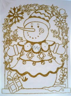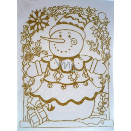 Vánoční okenní fólie zlaté glitry oblouk SNĚHULÁK 30 x 20 cm