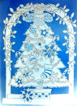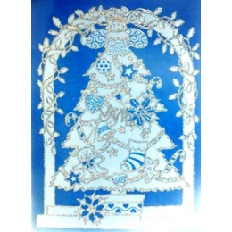 Vánoční okenní fólie zlaté glitry oblouk STROMEČEK 30 x 20 cm