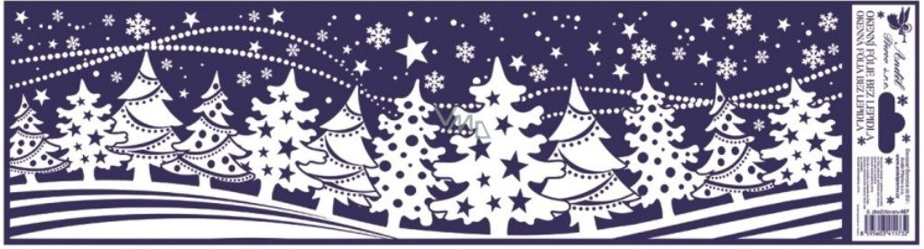 Okenní fólie bez lepidla vánoční krajinka pruh les 45 x 12 cm
