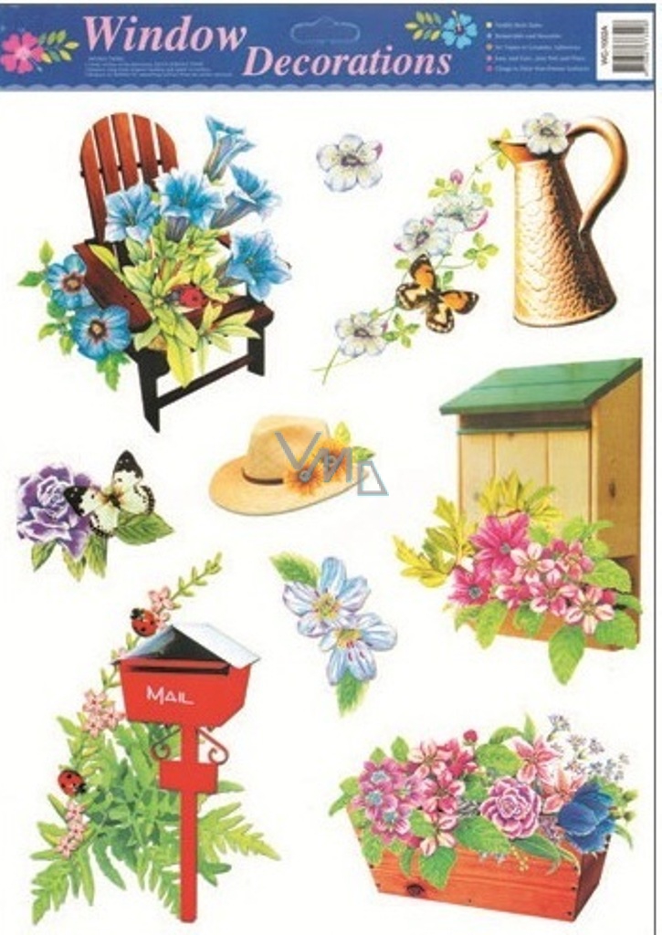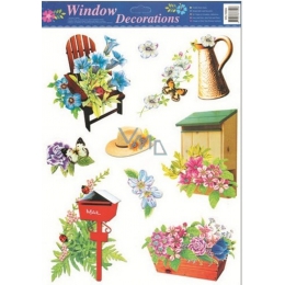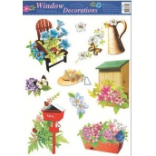 Okenní fólie bez lepidla zahrada židle s květy 42 x 30 cm