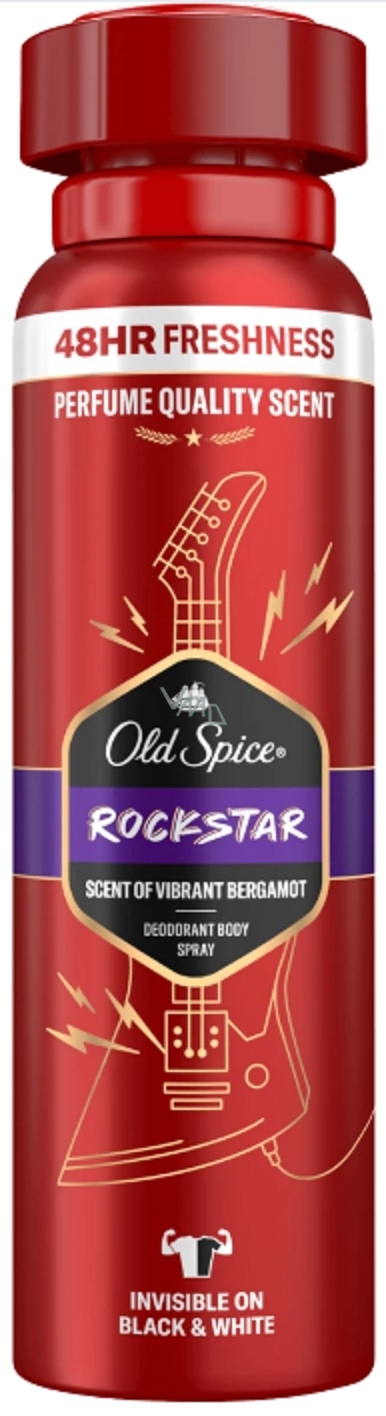 Old Spice dezodorant w sprayu Rockstar chroni skórę przed nieprzyjemnym zapachem i aż do 48 godzin i jednocześnie nie pozostawia śladów na czarnym i białym ubraniu. Jego zapach to perfumowana cytrusowa woń bergamotki i chrupiącego jabłka połączona z drzewnymi nutami, co da Ci uczucie świeżości. Zafunduj sobie opiekę od marki Old Spice.