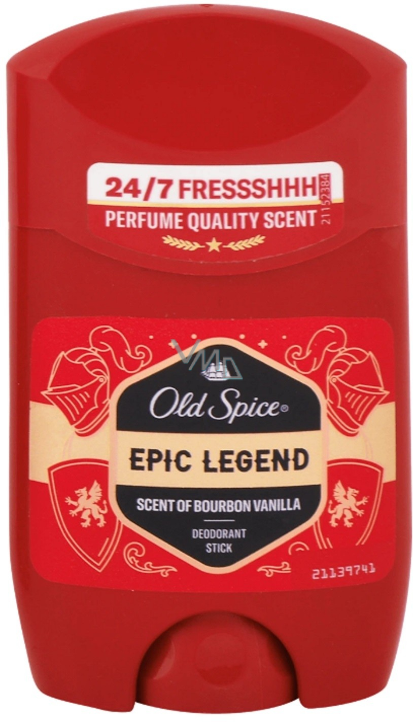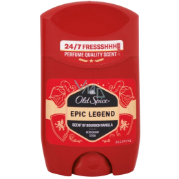 Zažijte legendární svěžest s Old Spice Epic Legend tuhým deodorantem pro muže. Tento deodorant přináší dlouhotrvající ochranu proti zápachu a vůni parfémové kvality, která vás okouzlí svou sladkou a mužnou vůní burbonské vanilky.