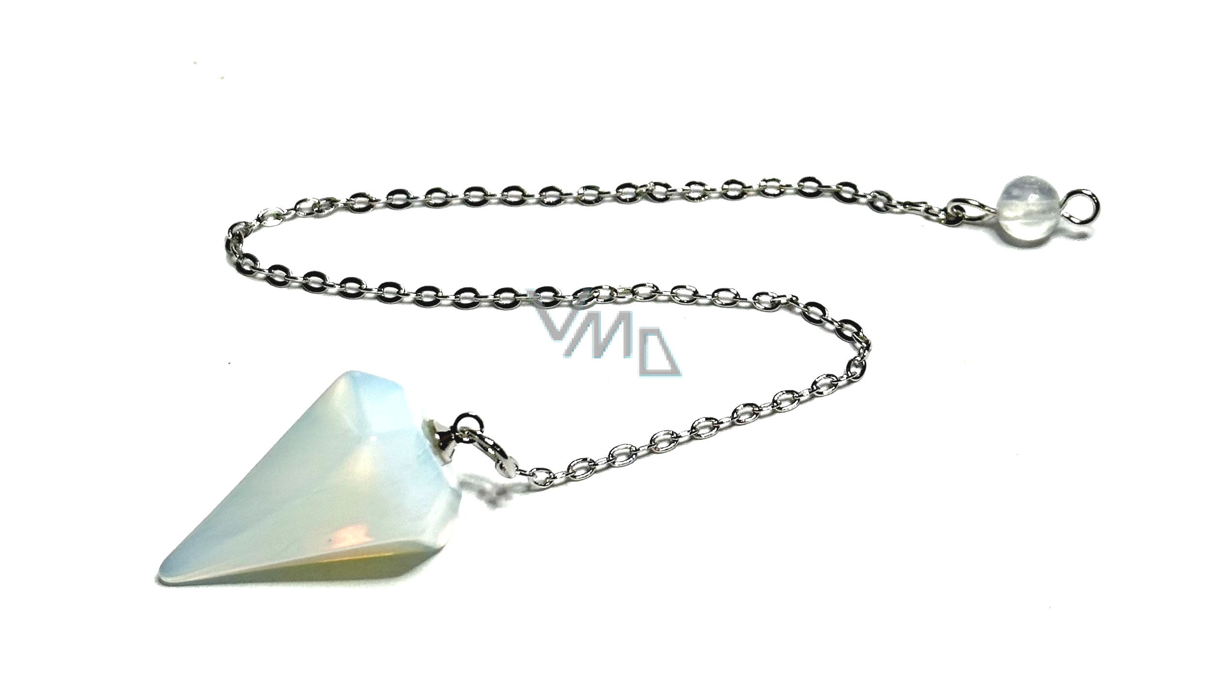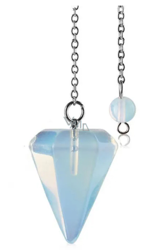 Opalit wahadło syntetyczny kamień 2,5 cm + 18 cm łańcuszek z koralikami, kamień pragnienia i nadziei