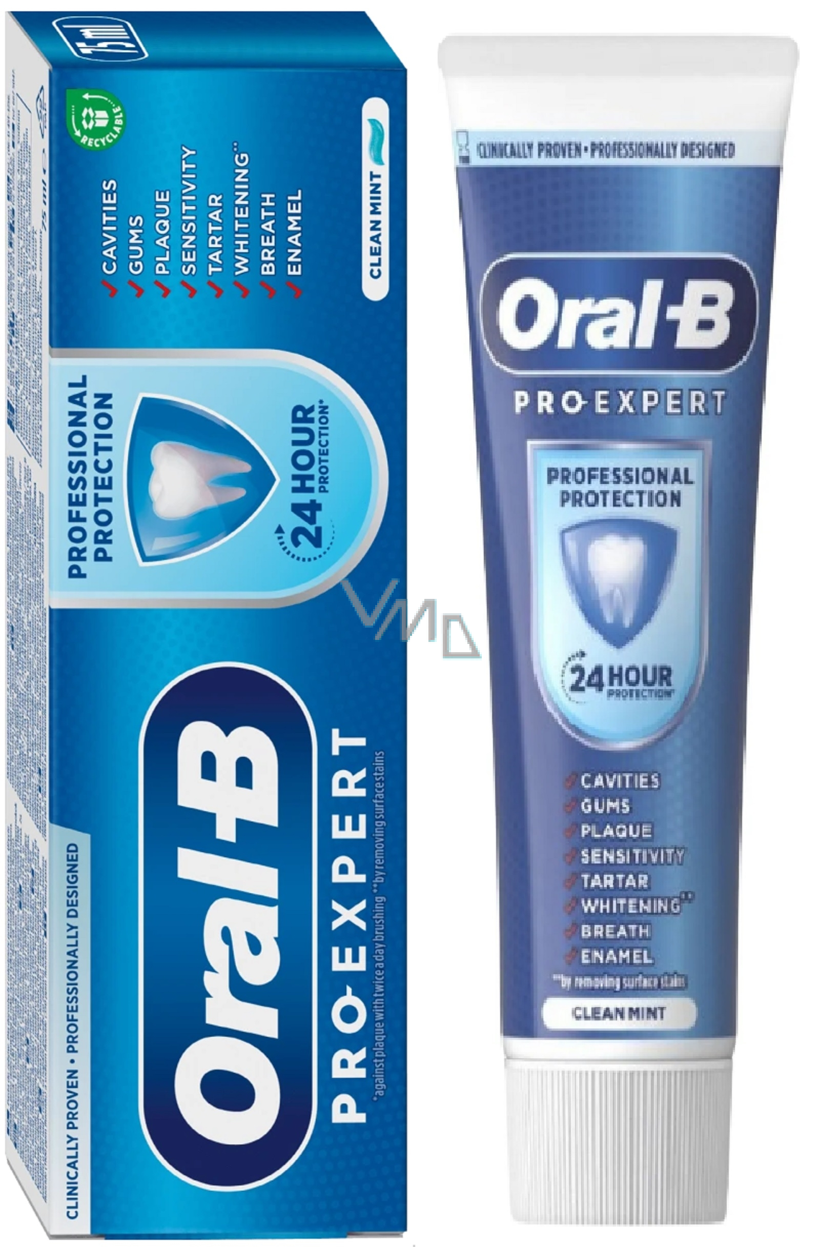 Pasta do zębów Oral-B Pro-Expert Professional Protection zapewnia 24-godzinną ochronę przed ośmioma obszarami, które najczęściej kontrolują dentyści: problemy z dziąsłami, wrażliwość, próchnica, płytka, plamy, nieprzyjemny zapach z ust, kamień nazębny i erozja szkliwa. Pomaga także usunąć powierzchniowe zabarwienia zębów i łagodzi wrażliwość. Pasta Oral-B zawiera fluor cyny i fluor sodu i jest odpowiednia dla dorosłych oraz dzieci od 12 roku życia. Ciesz się profesjonalną pielęgnacją od marki Oral-B.