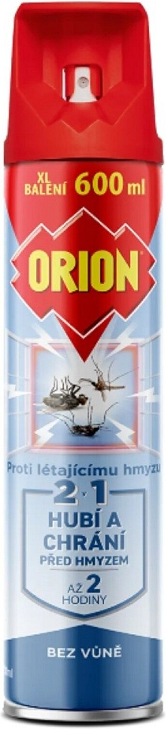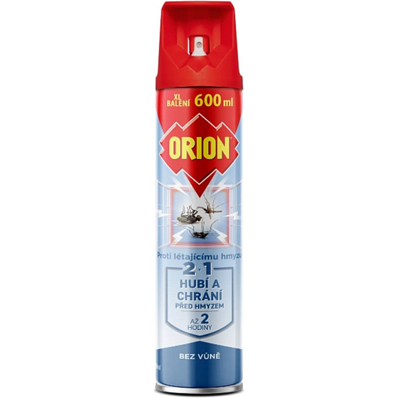 Orion 2v1 przeciwko owadom latającym bez zapachu, 600 ml to skuteczny środek owadobójczy w postaci sprayu przeznaczony do szybkiej likwidacji i ochrony przed owadami latającymi w pomieszczeniach. Natychmiast zabija muchy, komary (w tym komara tygrysiego), osy i inne, a jednocześnie tworzy efekt ochronny, który utrzymuje się do 2 godzin. Spray jest bez dodanego zapachu, więc nie pozostawia nieprzyjemnego zapachu.