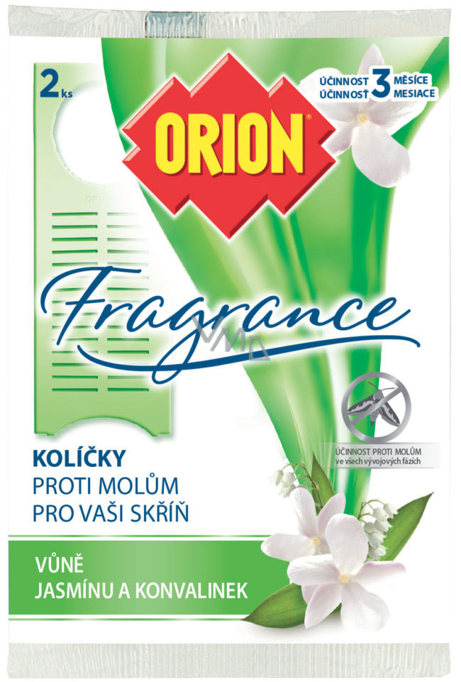 Orion Fragrance kolíčky proti molům s funkcí osvěžovače vzduchu účinně hubí moly ve všech vývojových fázích. Zanechávají příjemnou vůni jasmínu a konvalinek.