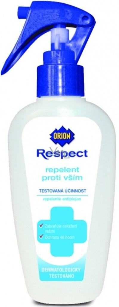 Orion Respect repelent proti vším předchází nakažení, odpuzuje vši. Zabraňuje nakažení vešmi, v případě výskytu u osob v okolí.