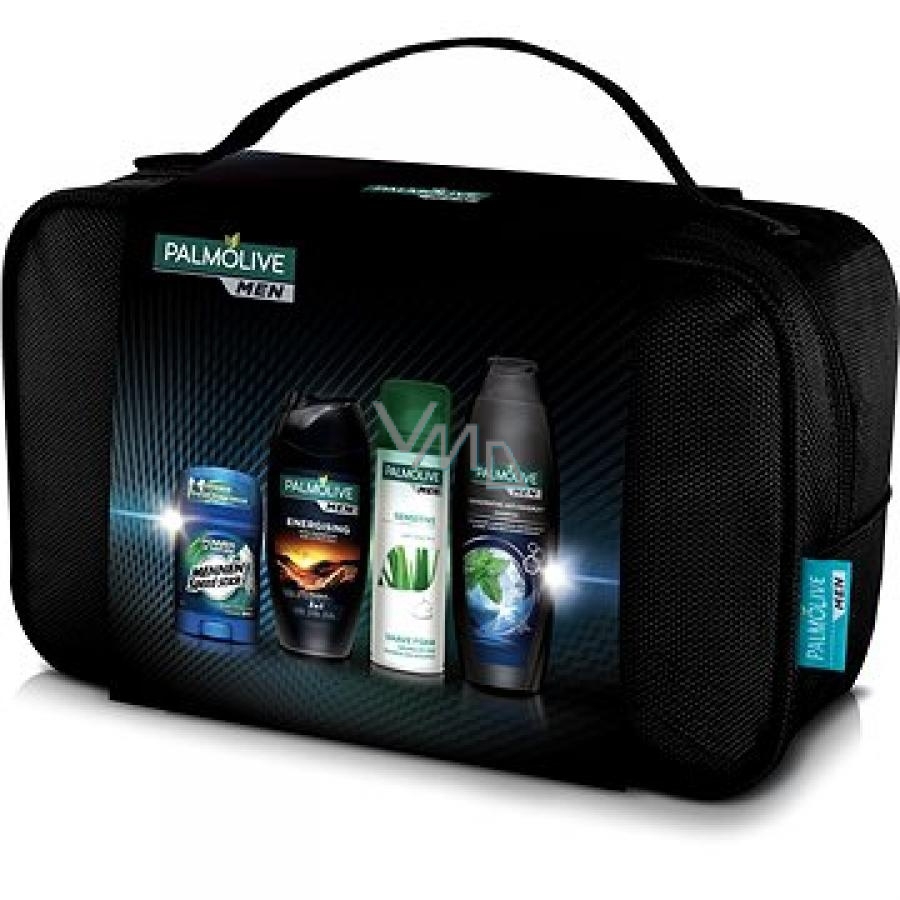 Palmolive Men Energising 3v1 sprchový gel pro muže 250 ml + Sensitive pěna na holení 300 ml + Invigorating Anti-Dandruff šampon na vlasy 350 ml + Mennen Speed Stick Power of Nature Avalanche tuhý deodorant 60 g + etue, kosmetická sada
