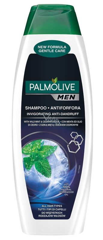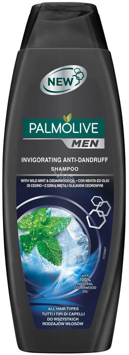 Šampon Palmolive Men Invigorating obsahuje výtažky z divoké máty a dřevěný olej. Obohacen o 100% přírodní výtažky z máty, aloe vera a také o olej z cedrového dřeva. Vhodný pro všechny typy vlasů. Účinný proti lupům.