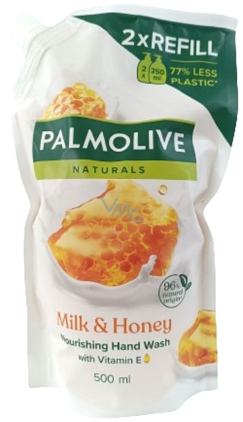 Staranna i regularna higiena rąk mydłem to podstawowy nawyk higieniczny. Płynne mydło Palmolive Milk & Honey refill delikatnie oczyszcza dłonie i usuwa wszelkie zanieczyszczenia. Preparat o przyjemnym zapachu jest wzbogacony o naturalne wyciągi z mleka i miodu. Jego delikatna formuła zawiera składniki ochronne, które zapobiegają wysuszaniu skóry, nawilżają ją i dostarczają jej potrzebnej wilgoci. Mydło zapewnia uczucie świeżości i doskonałej czystości. Twoje ręce będą jedwabiście gładkie w dotyku i wspaniale nawilżone.