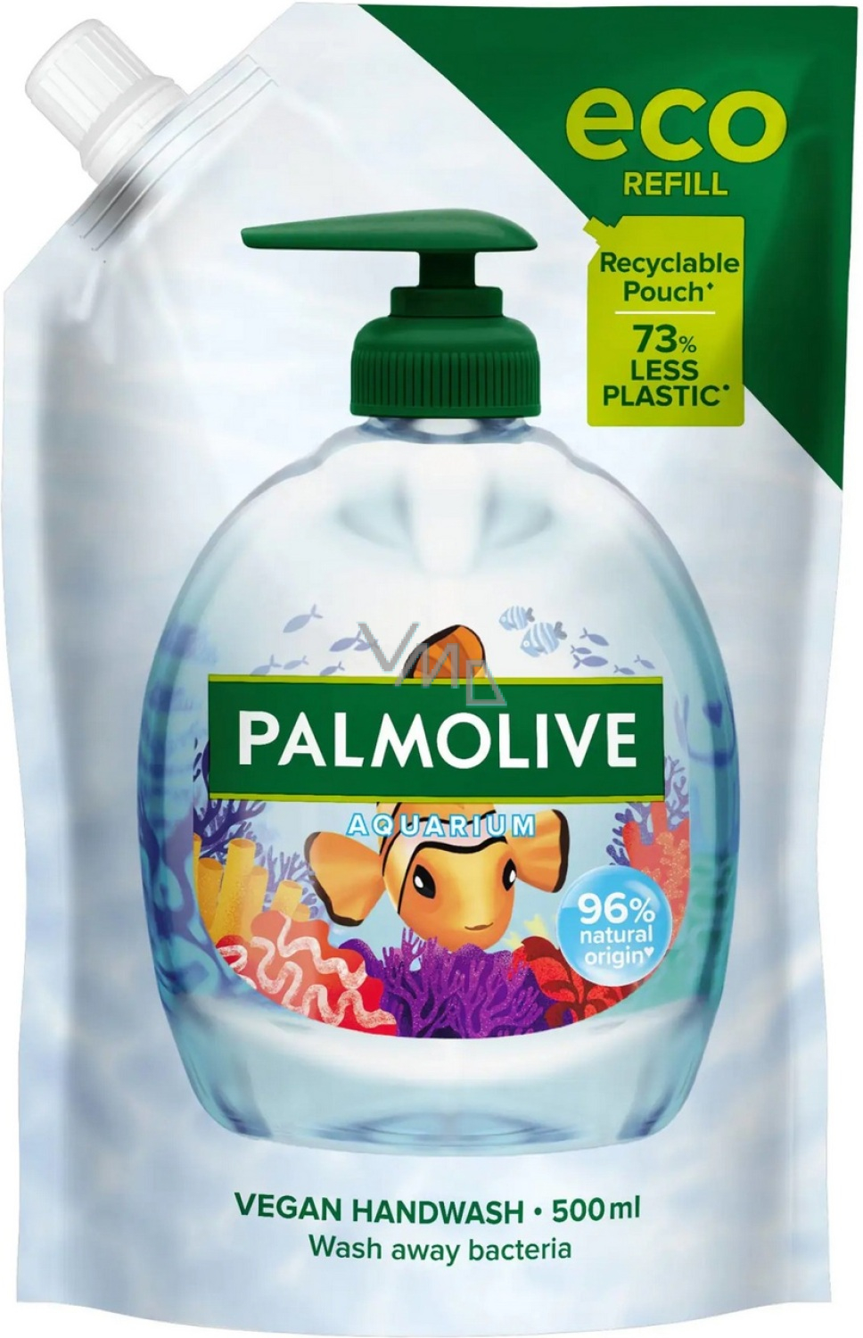 Palmolive Aquarium je jemné tekuté mýdlo v náhradní náplni, které účinně myje ruce, odstraňuje nečistoty a zároveň hydratuje pokožku. Díky atraktivnímu designu s motivy podmořského světa je oblíbené i u dětí. Má příjemnou svěží vůni a je vhodné pro každodenní použití celé rodiny.