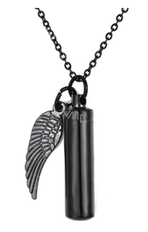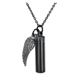 Pamiętkowy, pietny urnowy přewieszek, Anęlski kręg ćarny wodoodporny, stal nierdzewna 9 x 37 mm
