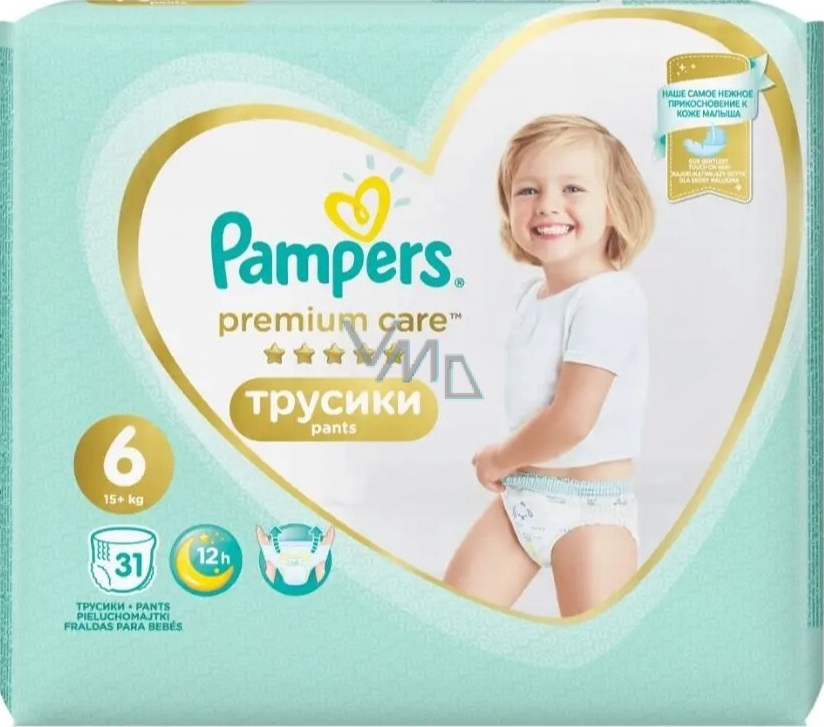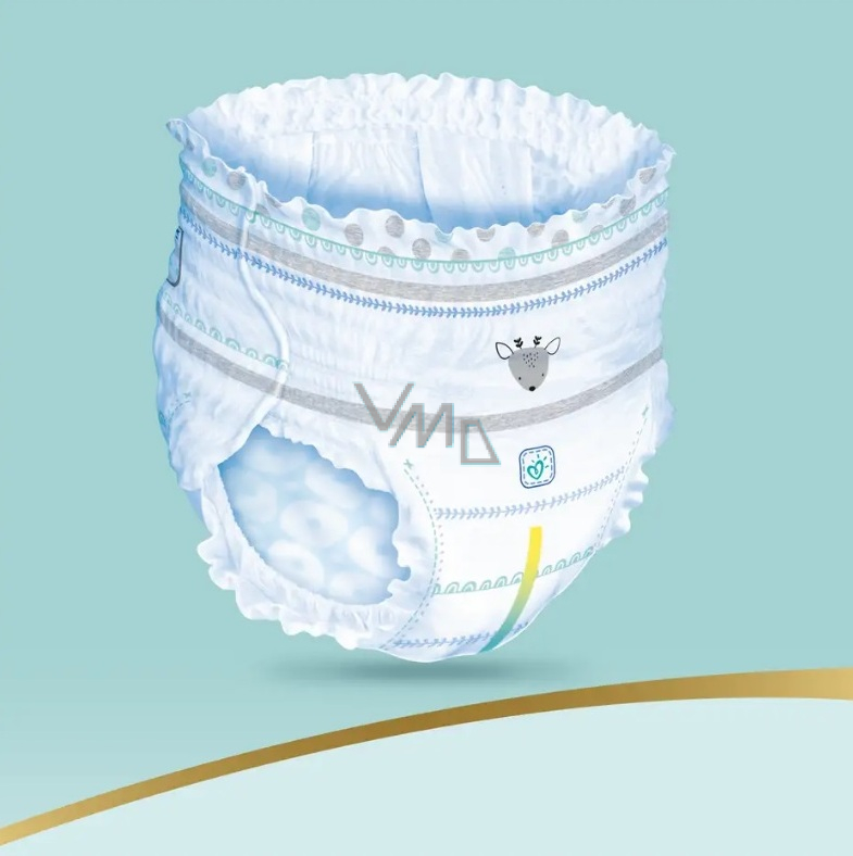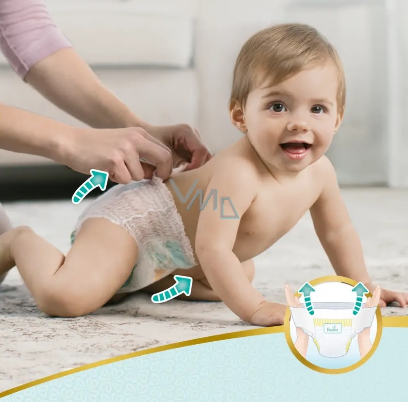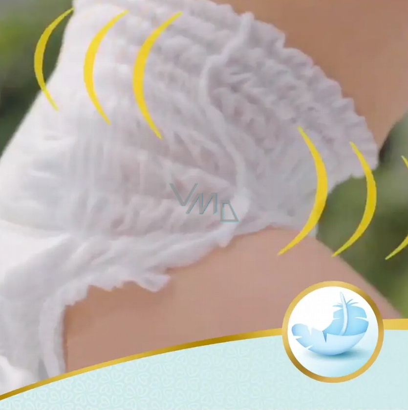 Pampers pieluchy majtki Premium Care dla łatwego zakładania i najdelikatniejszego dotyku skóry. Są wyposażone w miękki i elastyczny pas dla łatwego użycia i wygodnego noszenia. Pieluchy majtki od marki Pampers są zaprojektowane tak, aby umożliwić wolny przepływ powietrza wewnątrz pieluchy, co zapewnia suchość dzięki oddychalności.