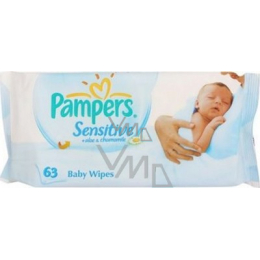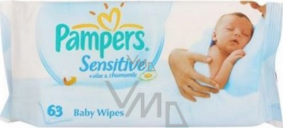 Pampers Sensitive dětské vlhčené ubrousky s Aloe Vera a heřmánkem. Ubrousky určené k otírání pokožky novorozeňat napuštěné heřmánkovým extraktem bez alkoholu. Dětské čistící ubrousky Pampers Sensitive - něžně čistí citlivou pokožku děťátka. Pro utišení a zklidnění citlivé pokožky dítěte. Navíc, díky jejich speciálnímu neutralizačnímu systému, napomáhají rychle vyrovnávat pH dětské pokožky.