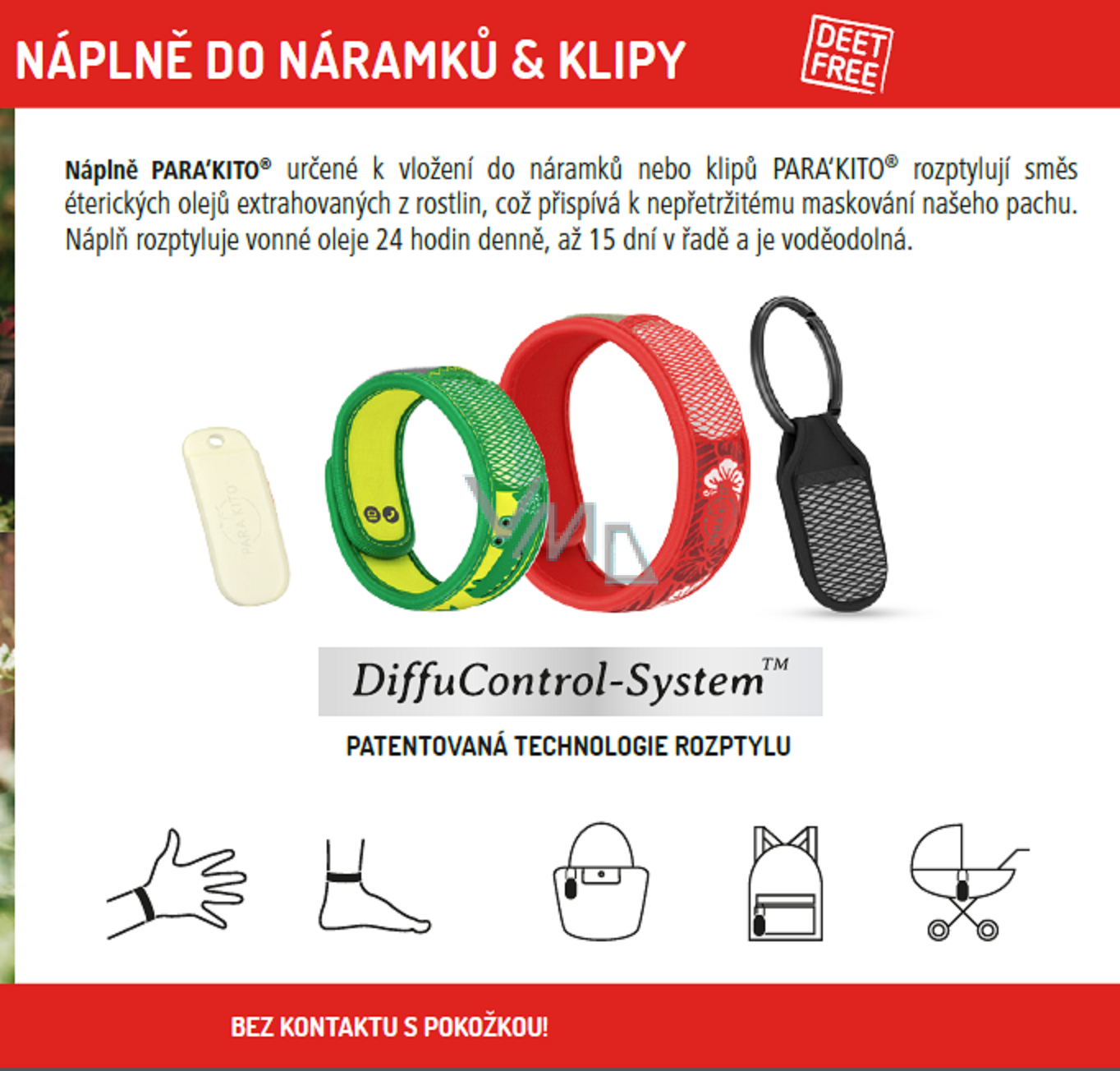 Pro pokračující krycí účinek je možné kombinovat se sprejem nebo roll-onem PARAKITO. Náplně můžete dokoupit samostatně.