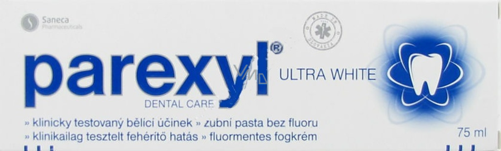 - Parexyl Ultra White je svým složením zaměřený na odstranění skvrn ze zubů