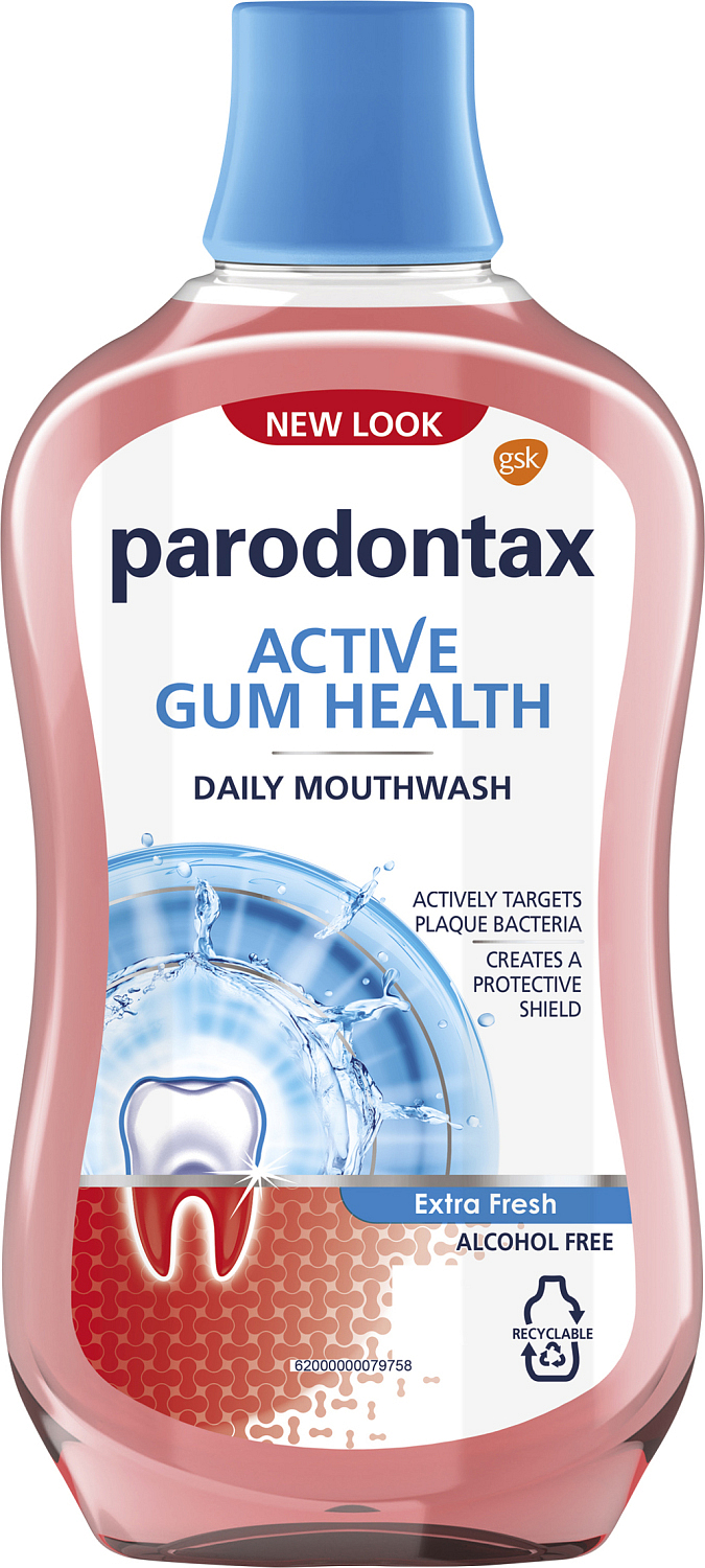 Zdrowe dziąsła są podstawą zdrowych zębów. Problemy z dziąsłami mogą być spowodowane gromadzeniem się płytki nazębnej w trudno dostępnych miejscach, co może prowadzić do cofania się dziąseł. Aktywnie walczy z bakteriami płytki nazębnej, tworzy ochronną warstwę, co pomaga zapobiegać ponownemu osadzaniu się płytki. Używaj płynu do ust parodontax Active Gum Health jako codzienną część regularnej pielęgnacji jamy ustnej. Pomoże Ci utrzymać zdrowsze dziąsła i silniejsze zęby. Płyn do ust z fluorem bez alkoholu.