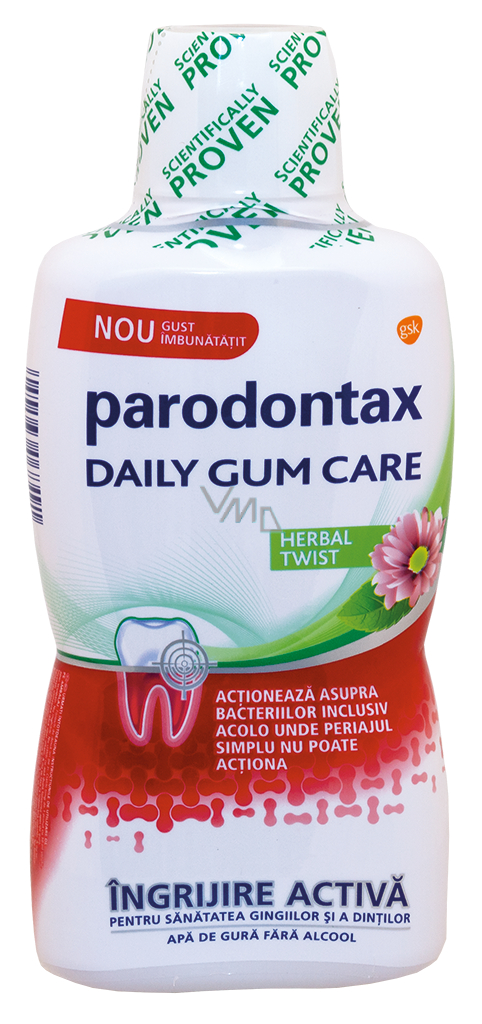 Parodontax płyn do płukania ust Daily Gum Care Herbal Twist pomaga usuwać płytkę nazębną między zębami i w linii dziąseł. Zdrowe dziąsła są podstawą zdrowych zębów. Usuwanie płytki nazębnej w linii dziąseł i między zębami pomaga zapobiegać powrotowi problemów z dziąsłami. Używaj płynu do płukania ust parodontax Daily Gum Care jako codziennego elementu regularnej pielęgnacji swojej jamy ustnej. Jest naukowo udowodnione, że pomaga utrzymać zdrowsze dziąsła i zęby.