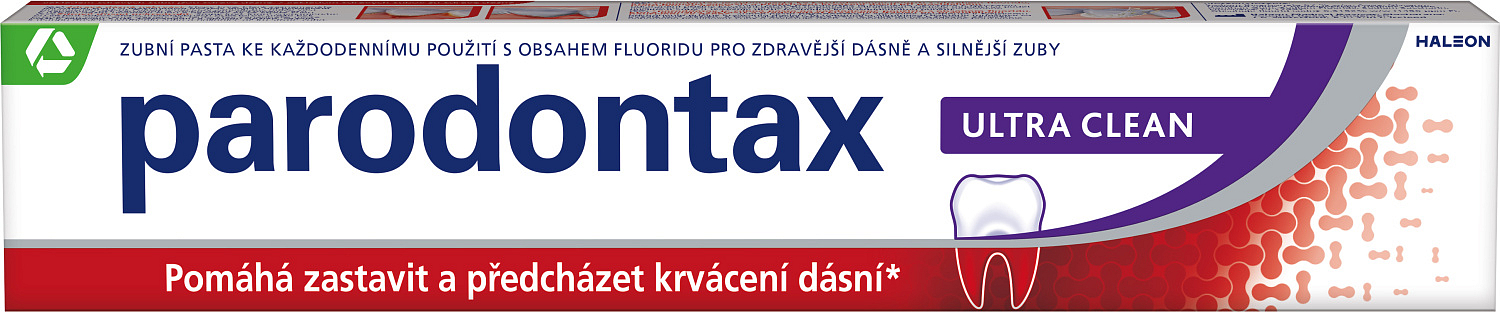 Parodontax Ultra Clean to pasta do zębów z fluoridem, która jest przeznaczona do codziennej pielęgnacji zdrowia dziąseł i zębów. Pomaga usuwać bakterie wzdłuż dziąseł, które powodują ich krwawienie, a jednocześnie pozostawia długotrwałe uczucie czystości i świeżości w ustach.