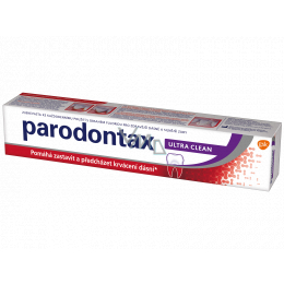 Pasta do zębów parodontax Ultra Clean zostawia uczucie niezwykle czystych zębów i świeżości w ustach. Usuwa bakterie, które mogą powodować krwawienie dziąseł, i pomaga utrzymać dziąsła zdrowe a zęby mocne.