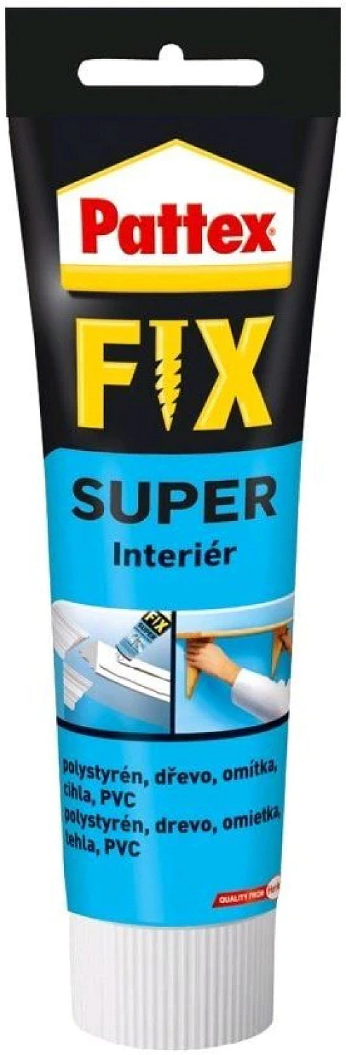Pattex FIX Super to klej montażowy do klejenia materiałów porowatych do użytku wewnętrznego. Kleji lekkie i chłonne materiały, np. dekoracyjne płyty, elementy styropianowe, płyty drewniane i ościeżnice itp.