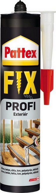 Pattex Profi Fix - nahrazuje hřebíky, šrouby a hmoždinky. Super silné a krátkodobě voděodolné lepidlo, které díky speciálnímu složení zajišťuje rychlou přilnavost a vysokou konečnou pevnost při použití v interiéru i exteriéru, pro savé i nesavé materiály (např. kov).