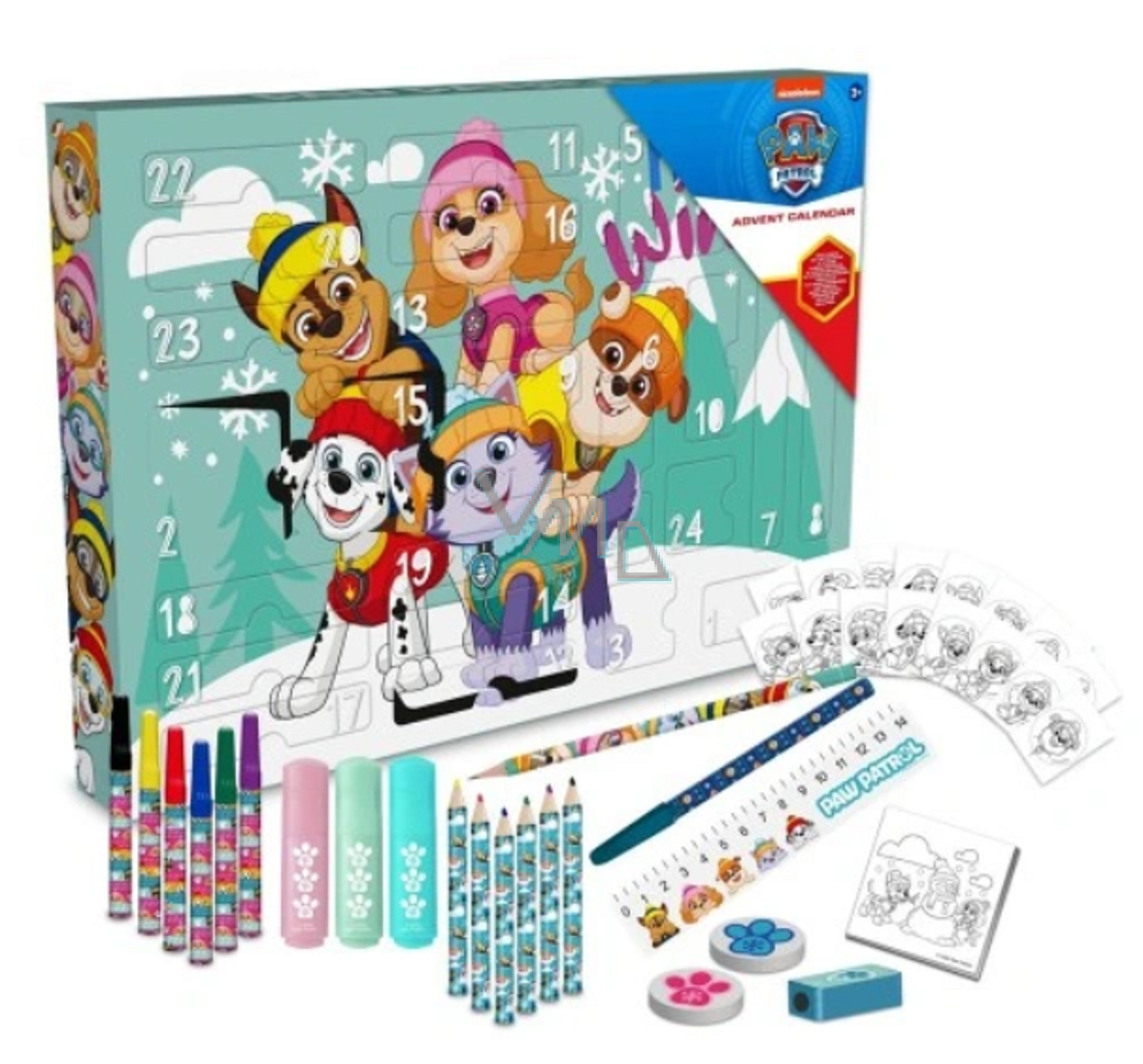 Paw Patrol Tlapková patrola Adventní kalendář s psacími potřebami 24 kusů