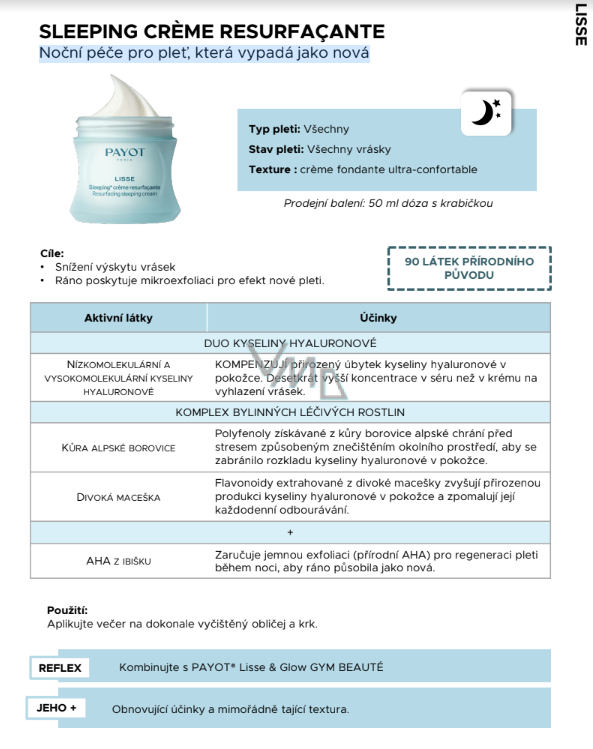 Opis Payot Lisse Sleeping resurfacante vyhlazující a regenerační noční krém proti vráskám 50 ml