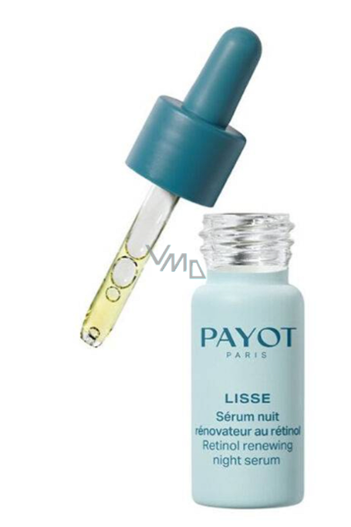 Payot Lisse Sérum Nuit Renovateur Au Retinol nocne wygładzające serum wygładza skórę, koryguje widoczne, a nawet głębokie zmarszczki i przywraca blask. Ekspercka pielęgnacja zmarszczek tym oleistym serum z ultra skoncentrowaną zawartością czystego Retinolu. Odpowiednie dla wszystkich typów skóry. Produkt jest bezzapachowy.