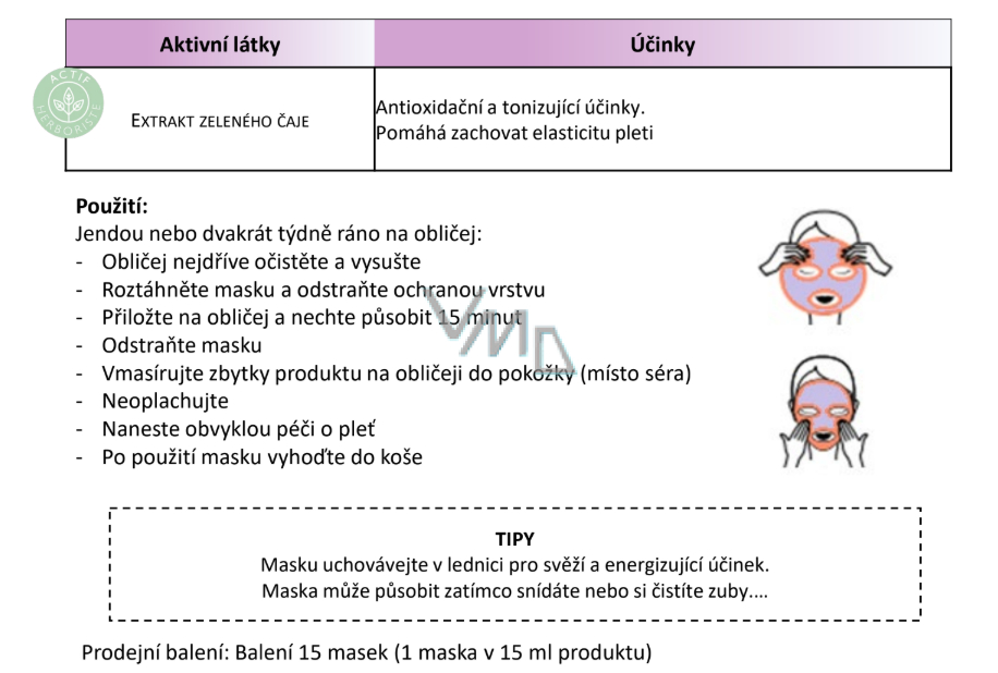 - Rozwiń maskę i usuń folię ochronną. Pozostaw na twarzy na 15 minut.