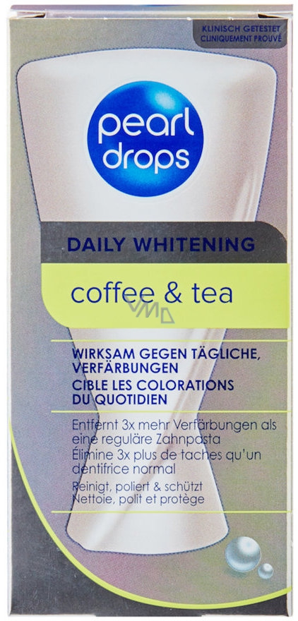 Ideální pro kuřáky a milovníky kávy a čaje. Zubní pasta proti tmavým skvrnám Pearl Drops Coffee & Tea má patentovanou formuli, která odstraňuje plak a skvrny způsobené kávou a čajem. Výsledkem jsou krásně bílé zuby, sebevědomý úsměv a svěží dech.