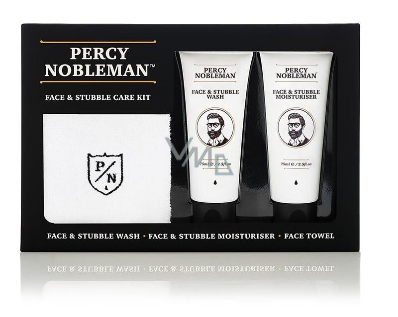 Percy Nobleman Čisticí gel na obličej a vousy 75 ml + Hydratační krém na obličej a vousy 75ml + Bavlněný ručníček, kosmetická sada