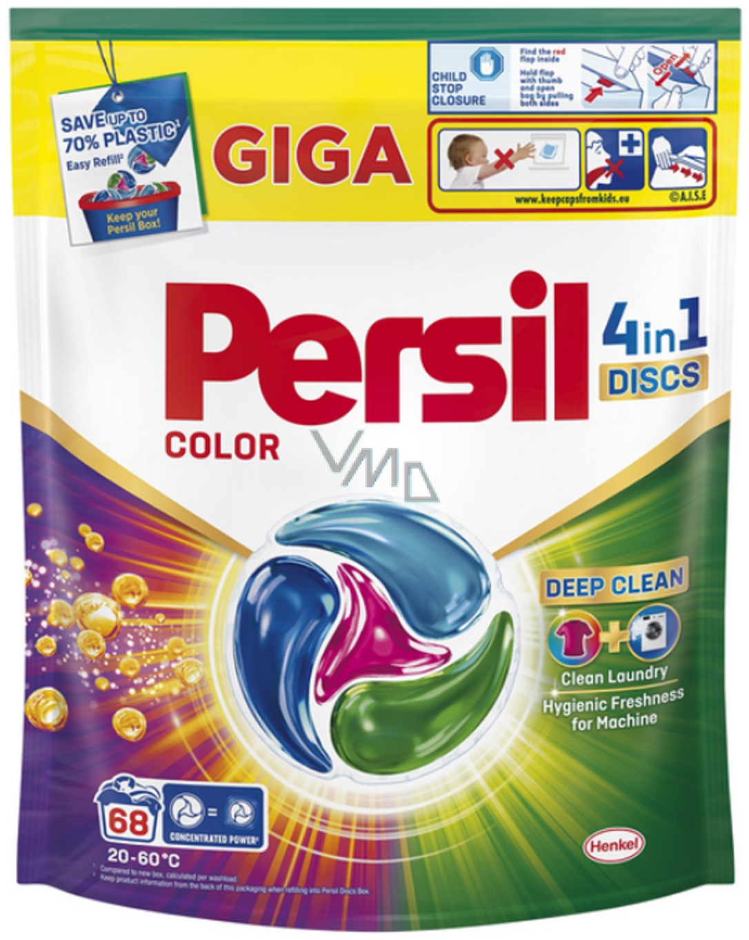 Kapsle pro mytí barevného prádla Persil Deep Clean 4v1 na hloubkové čištění a zářivé barvy vašeho prádla po každém mycím cyklu. Disky odstraňují i ty nejhlubší skvrny, aniž by poškodily látku. Každá ze čtyř komor disku obsahuje účinné složení navržené tak, aby fungovalo ve 4 klíčových oblastech: odstraňování skvrn, dlouhotrvající svěžest, jas oděvu a péče o tkaniny. A díky aktualizovanému složení pomáhají vaší pračce zůstat hygienicky čisté. Jednoduše vložte kotouč do bubnu vaší pračky a užívejte si všech výhod používání pracích prostředků Persil .