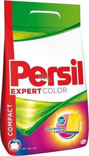 Již od 20 °C. Pro ještě větší účinek při odstraňování skvrn již od 20 °C jsou v receptuře nového prášku Persil Expert Color obsaženy kapsle s tekutým odstraňovačem skvrn. Větší účinnost. Inovovaná receptura pracího prášku Persil Expert je natolik účinná, že na prací dávku stačí 80 g prášku místo původních 100 g. Šetrnější k vašemu oblečení! Nižší teploty udržují svěží barvy a vlákna v původním tvaru po delší dobu. Vaše oblečení tak zůstane déle jako nové! Nižší spotřeba energie! Při nižších teplotách ušetříte a uděláte něco užitečného pro životní prostředí. Dříve účinné – dříve hotové! Složení nového Persilu Expert zajišťuje plný prací výkon již od 20 °C. Používáním kratších pracích cyklů šetříte mimo jiné i váš čas strávený při domácích pracech.