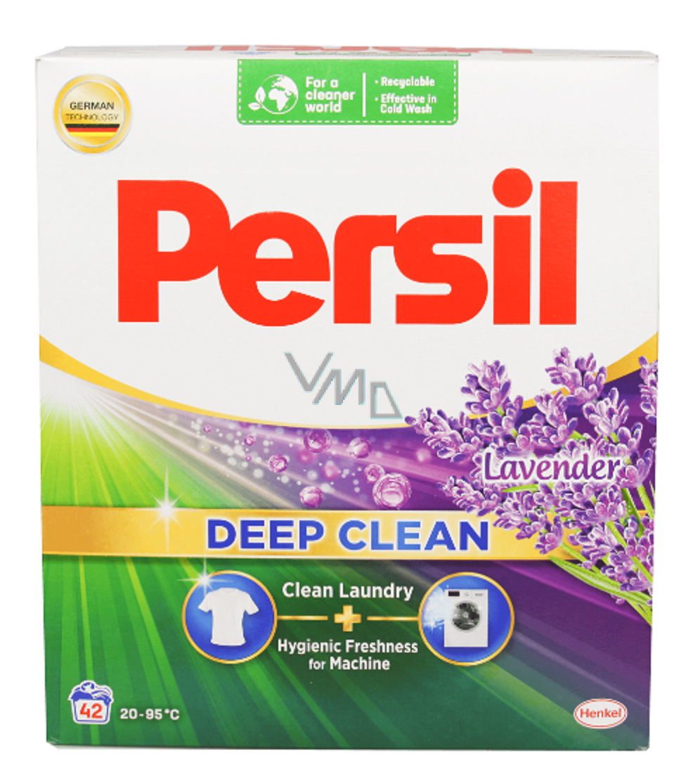 Hledáte prací prášek, který dokáže vaše oblečení perfektně vyčistit a osvěžit? Tento prací prášek se hodí na barevné prádlo. Co se složení prostředku týče, je PERSIL Lavender Freshness 2,52 kg (42 praní) navržený jako univerzální prostředek. Poradí si tedy jak s jemným, tak sportovním i dalším prádlem. Prací prášek PERSIL je vyroben k běžné údržbě.