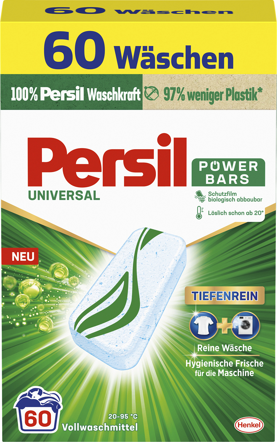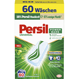 PERSIL kapsle do prania Eco Power Bars Universal są skutecznym i głęboko czyszczącym środkiem do prania. Persil kapsle Power Bars to innowacyjny proszek sprasowany w formie tabletek w 100% biologicznie opakowaniu. Opakowanie jest wykonane z recyklingowanego papieru i zawiera aż o 97% mniej plastiku*, a jednocześnie niezawodnie zapewnia 100% moc Persil. Persil Eco Power Bars, które zapewniają ubraniu głęboką czystość i długotrwałą świeżość, oferują konsumentom sprawdzoną jakość środka do prania Persil w bardziej zrównoważonych i kompaktowych opakowaniach. Każde opakowanie zawiera 60 tabletek do prania, które są indywidualnie pakowane w wodoodporną folię, dlatego łatwo je używać, dozować, są praktyczne i przenośne. Ochronne opakowanie wokół tabletek jest rozpuszczalne w wodzie i jest w pełni biologicznie rozkładalne, więc nie trzeba go usuwać przed praniem.