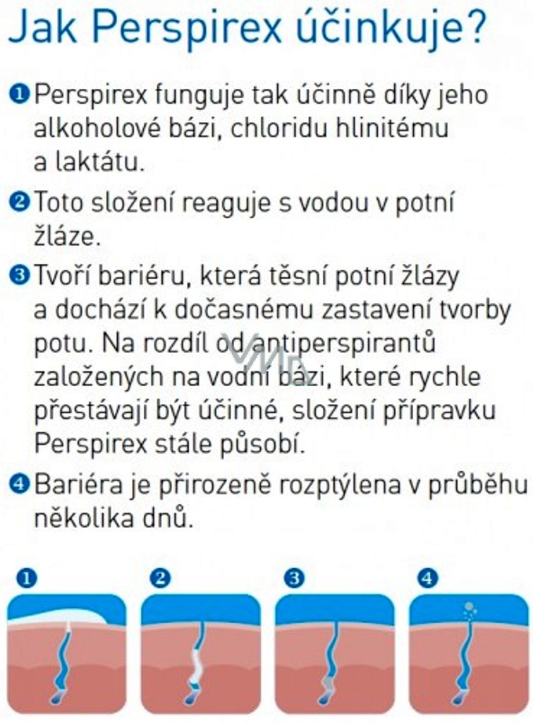 Nenechte se obtěžovat potem. Perspirex Original antiperspirant roll-on s účinkem třech až pěti dní je ochrana před pocením, která vás nezklame. Peripex není obyčejný antiperspirant. Klinicky testovaná formule přináší dlouhodobou ochranu před pocením a zápachem. Jedna aplikace působí až pět dní. Perspirex Original antiperspirant roll-on s účinkem třech až pěti dní má velmi šetrné složení. Neobsahuje parfemaci a nezanechává skvrny.