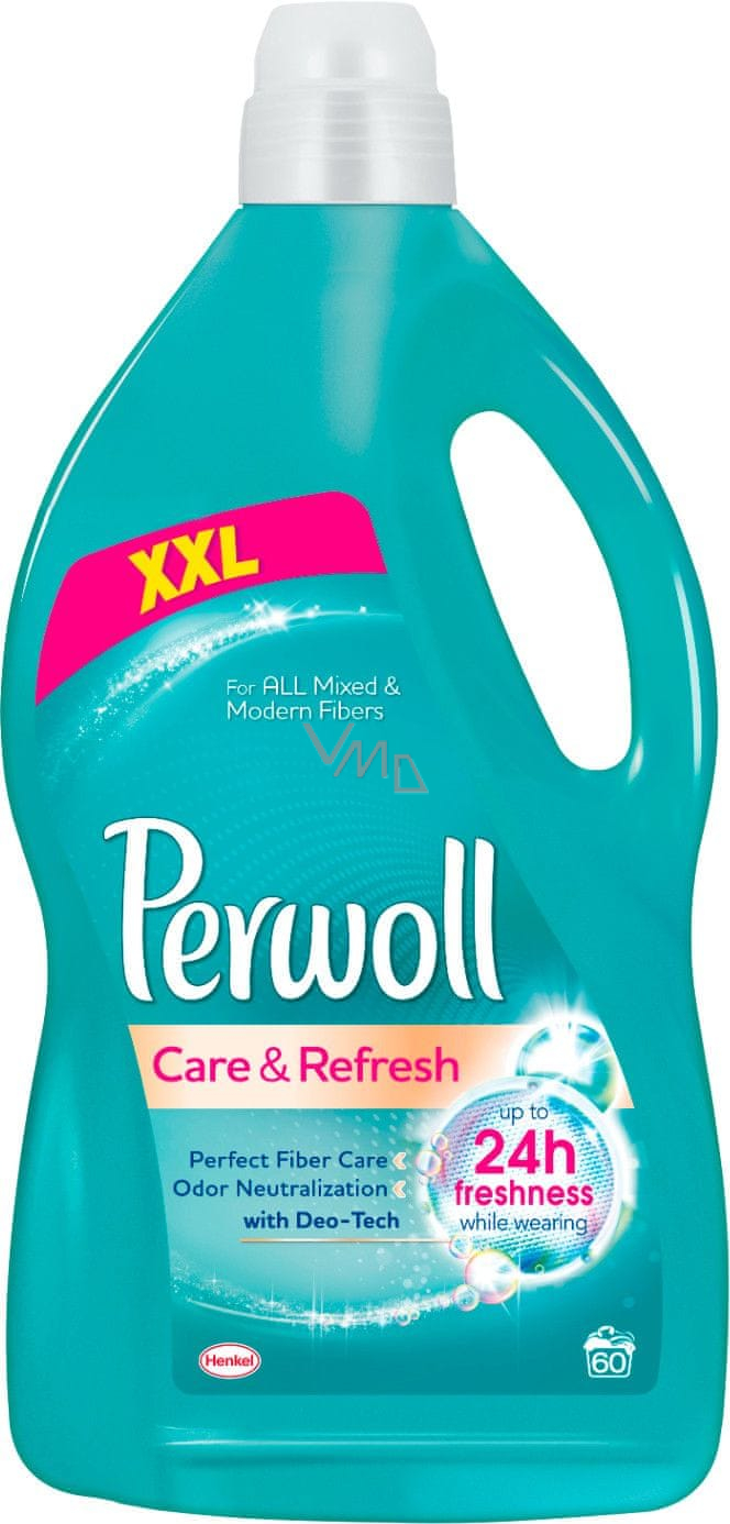 Perwoll Care & Refresh s Deo na syntetické a směsné textilie je specialní prací prostředek pro moderní oblečení vyvinutý k odstranění nepříjemných pachů a udržení svěžesti během nošení vašeho oblečení. Neutralizuje nepříjemné pachy oblečení. Postupně uvolňuje parfémové složky, které udržují svěžest během nošení až 24 hodin. Poskytuje dokonalou péči pro příjemné nošení.