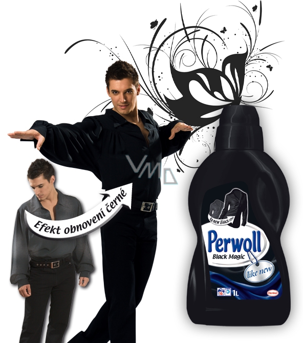 Perwoll Black Magic s efektem obnovení barev má velmi unikátní složení, které brání vymývání barevných pigmentů z vláken a předchází tak blednutí černé a tmavých barev. Je prvním speciálním pracím prostředkem, který obnovuje černou a tmavé barvy oblečení, neboť je zbavuje zašednutí, a s každým vypráním je intenzita barev výraznější. Je vhodný pro černé oblečení a oblečení v tmavých barvách i všechny druhy tkanin.
