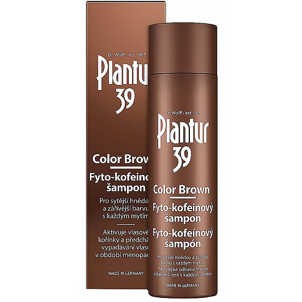 Plantur 39 Colour Brown to fito-kofeinowy szampon, który przynosi ciemniejszy brąz i bardziej intensywny kolor z każdym myciem włosów. Nieprzyjemne pierwsze siwe włosy i jasne korzonki zostaną zakryte. Przy każdym myciu na powierzchni włosa gromadzą się pigmenty, kolor staje się intensywniejszy. Szampon jest dodatkowo wzbogacony o aktywujący kofeinę, która przenika do włosowych folikulów. Aktywujący fito-kofein przenika do włosowych folikulów, gdzie pomaga zapobiegać menopauzalnemu wypadaniu włosów.