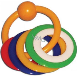 Grzechotka kółka to klasyczna grzechotka, która doskonale trzymana jest w rączkach dziecka, a dodatkowo poszczególne kółka doskonale sprawdzają się do gryzienia, gdy dziecko ząbkowanie. Kółka łatwo się trzymają, są lekkie - przyciągają uwagę maluszka swoją kolorowością i ruchom - pomagają rozwijać delikatną motorykę dziecka i zmysłowe postrzeganie.