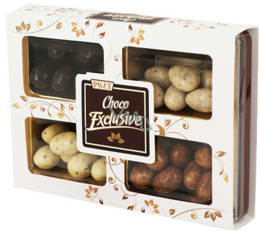 Poex Choco Exclusive směs mandlí v bílé, mléčné a hořké čokoládě 200 g
