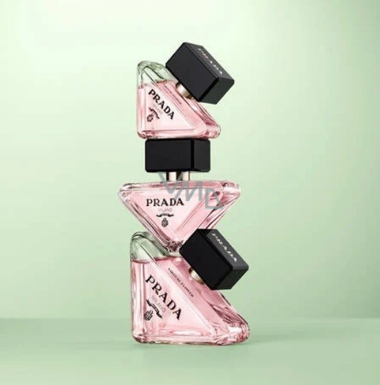 Tak jak oryginalny podpis, flakon Paradoxe Virtual Flower wyraża esencję domu ponownego odkrywania i preferencję kontrastów. Na pierwszy rzut oka minimalny i delikatny design, inspirowany ikonicznym logo trójkąta Prady, zaprojektowany tak, aby leżał na boku. Logo herbu Prady kontrastuje ze świeżym jasnoróżowym kolorem zapachu. Napełniany flakon perfum jest zwieńczony „Virtual Flower” na górnym ukosie.